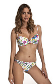 Тщательно продуманный дизайн бюстгальтера красиво приподнимает бюст. Регулируемые бретели и окружность обеспечивают идеальную посадку бюстгальтера по фигуре, а возможность отсоединения бретелей идеально подходит для принятия солнечных ванн. Дополняют все красивые трусы-бразилиана, которые подчеркивают и оптически приподнимают ягодицы. Уникальный рифленый материал добавляет колоритность, а принт - изящество и женственность.
